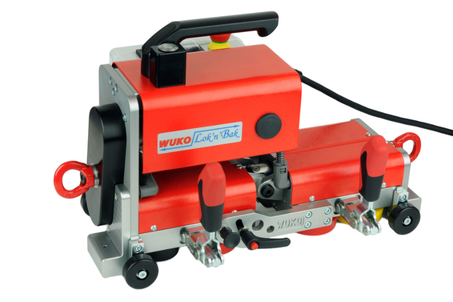 WUKOs smarta falsslutare Sprinter har uppdaterats och har samtidigt fått lägre vikt. Den väger endast 13,5 kg men har alla de smidiga funktionerna från tidigare, dubbla sensorer som känner när plåten tar slut och möjlighet att köra såväl konvexa som konkava tak. Dessutom justerar du enkelt trycket för alla falshjulen på ett ställe. Så här gör du: Sätt maskinen på falsen och kör. När den når nocken stannar den och allt du gör är att lossa ett handtag och sätta den i backläge. Maskinen vandrar sedan snyggt nedför, "trycker" falsen lite till och när den når språnget stannar den tack vare den inbyggda sensorn. Enda gången du lyfter maskinen är när du flyttar den från en fals och till nästa. Mad maskinen följer ett extra tryckhjul för anpassning till hårda/mjuka material.